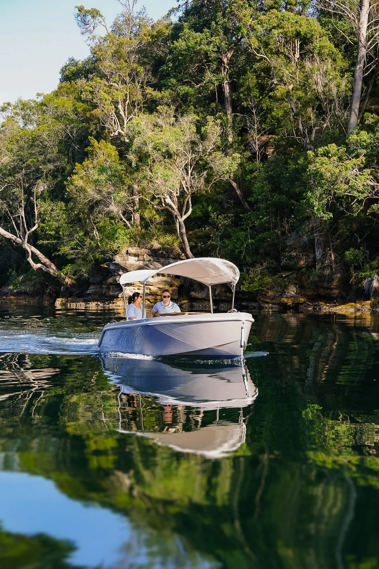Each boat comfortably fits up to 8 people. Designed for easy handling and comfort, the boats include a shaded canopy, generous seating, and a central picnic table with built-in cupholders. With safety a priority and the freedom to explore the National Park at your own pace, it’s a simple and enjoyable way to experience Akuna Bay from the water.